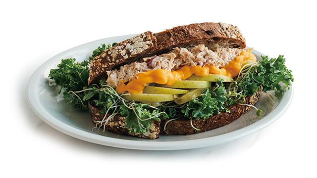 青りんごと野菜のフレッシュな味わいを添えた、秋のホットサンド。食材の風味を引き立てるカントリーブレッド・ブラウンに、ツナフィリング、チェダーチーズ、青りんごがぎっしり。甘味、塩味、酸味、コク、ほろ苦さのバランスにこだわって仕上げます。
