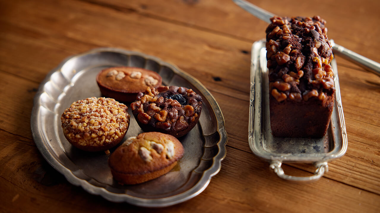 - ナッツをふんだんに使った「パティスリー ジュン ウジタ」の焼き菓子。店頭にてご用意しています。