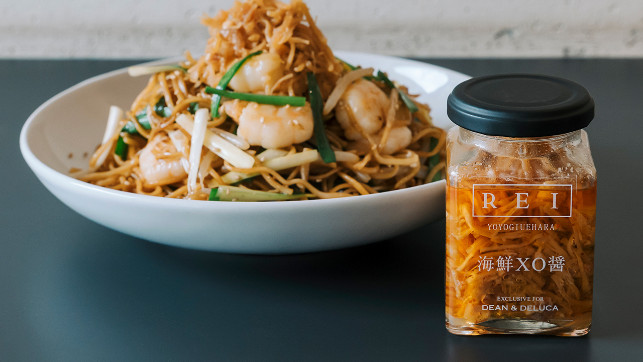 - 中華わっぱ弁当に使用しているのは、DEAN & DELUCAとREI Chinese restaurantのオーナーシェフ高島さんとともにつくり上げた調味料「海鮮XO醤」。厳選した干し貝柱や金華ハムから生まれる、華やかな香りと奥深いコクが魅力です。辛みを抑えたすっきりとした後味で、料理に少量加えるだけで味わいにぐっと奥行きが生まれます。ご自宅の料理にも、ぜひ取り入れてみてください。