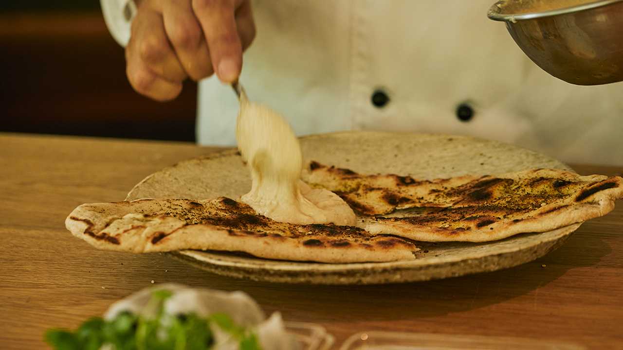 おいしい料理はおいしい皿から始まっています。手の込んだ料理もいいけれど、ときには直感でうつわを使いたくなるもの。さっと焼いた香り、ザタール(ミックススパイス)の香り、ごつごつした表面、バリッと感など、仲間とのひと時を盛り上げてくる豪快で楽しい一枚になりそうです。