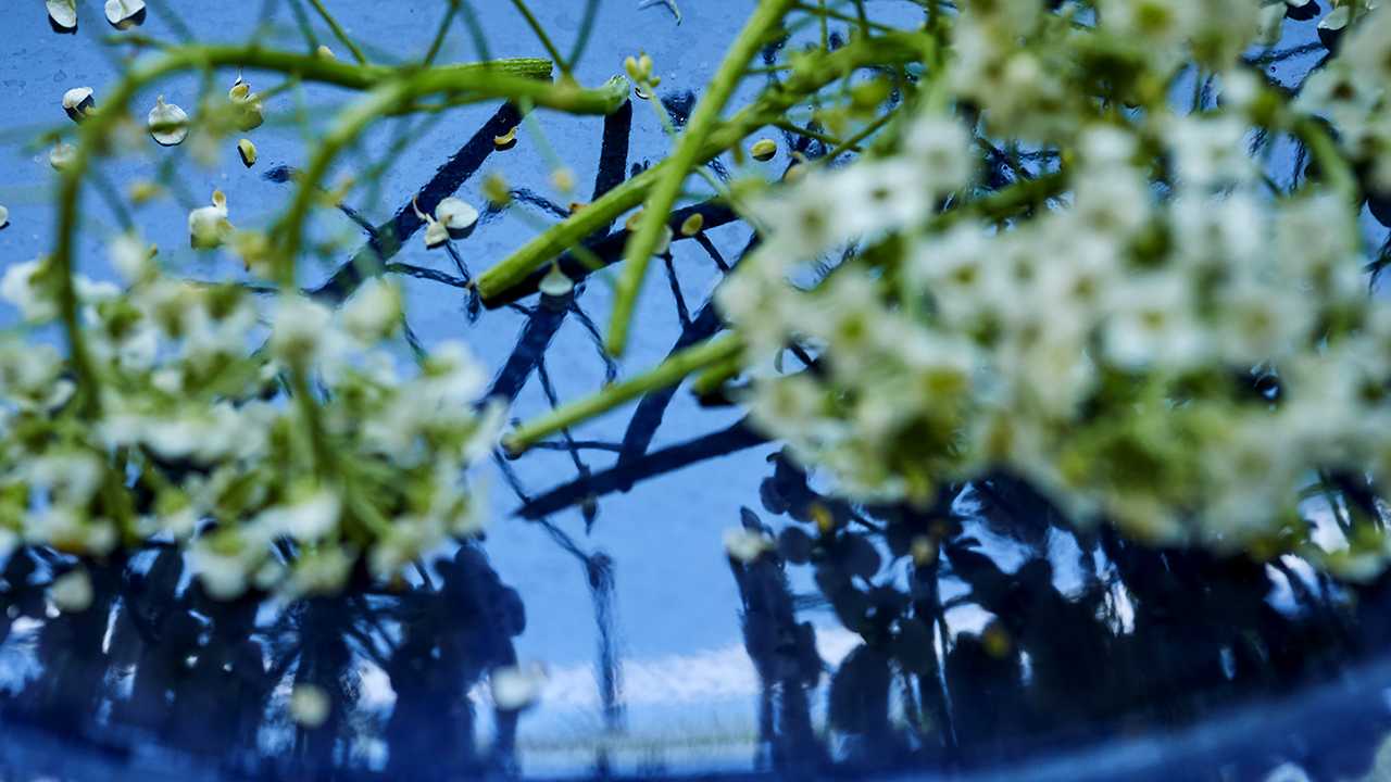 海や空など自然の美しい鮮やかなルリ色に映えるお花をのせて。おもてなしの時にも、はじめの一皿に季節のお花をのせてつかうと、季節を身近にぐっと感じることができます。