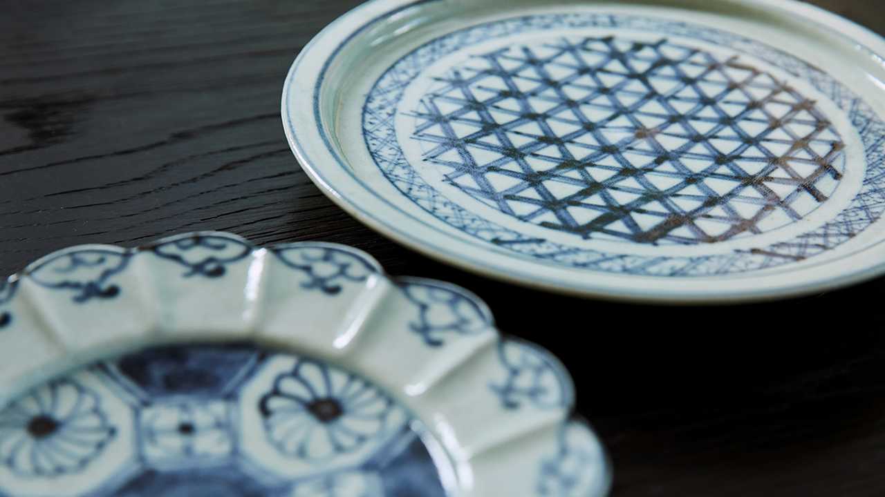 丹念に描かれた伝統的な文様の染付皿は、和食はもとより、和食材の洋の仕立ての料理によく合います。吉田崇昭さんの染付皿は、異国を思わせるエキゾチックな佇まいがあり、料理の国籍にこだわらず、日々の食卓でかろやかに使いこなしたいうつわです。