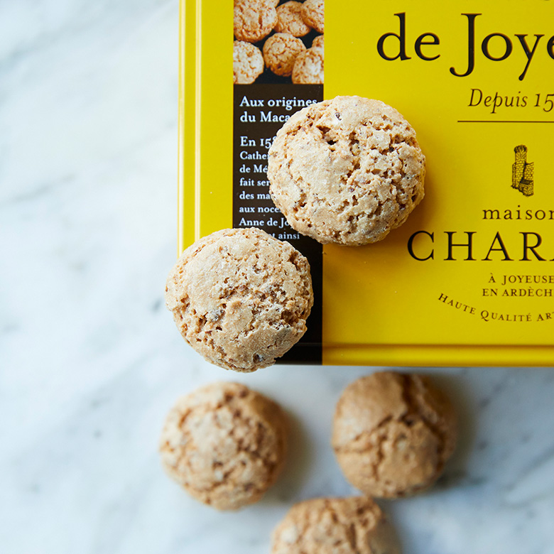 ローヌ・アルプ県アルデッシュ地方で、16世紀から守られてきた伝統的なレシピでつくられるマカロンは、甘さ控えめでアーモンドが香ばしく、素朴なおいしさ。ジョワイユーズ公爵の結婚式のためにイタリアから1571年に伝わったレシピで、フランスで最初につくられたマカロンとも言われています。