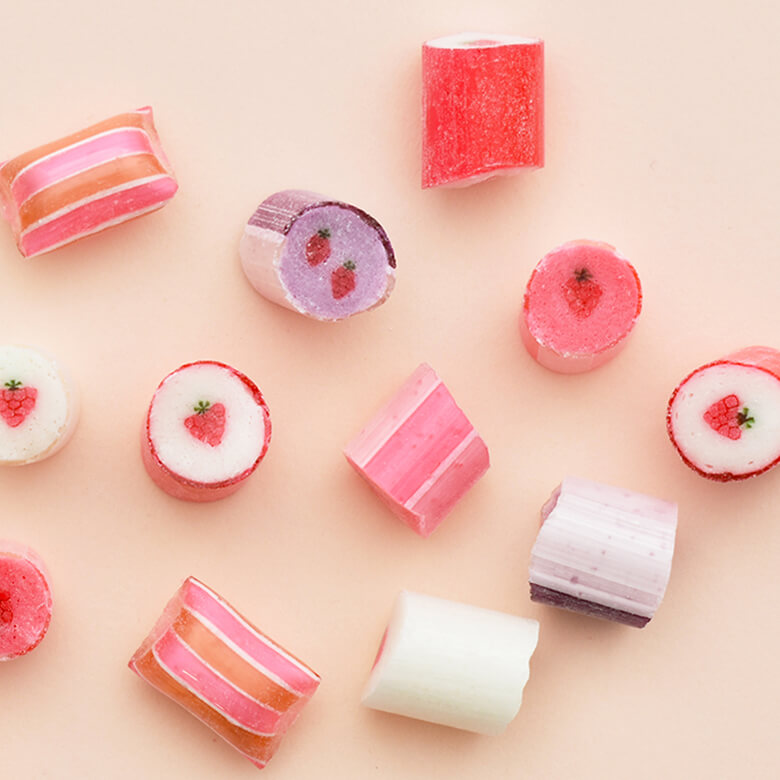 いちごミックス:砂糖、水飴/酸味料、香料、着色料(赤102、赤106、黄4、黄5、青1、青2、酸化チタン)