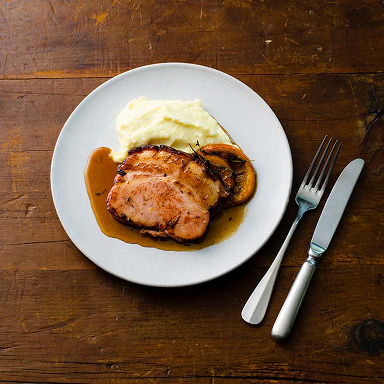 「幸福豚」のもも肉に、スパイスやハーブ、メープルシロップ、マーマレードなどを合わせたグレーズをたっぷり塗りながら焼き上げた、艶やかな皮目が食欲をそそるハムに仕立てています。前菜として軽く温めて、バターやマスタード、ピクルスと合わせたり、ホールで焼き上げ厚切りにして、ジャガイモのピューレとアンディーブを添えるのが定番の組み合わせ。ワインがすすむ逸品です。