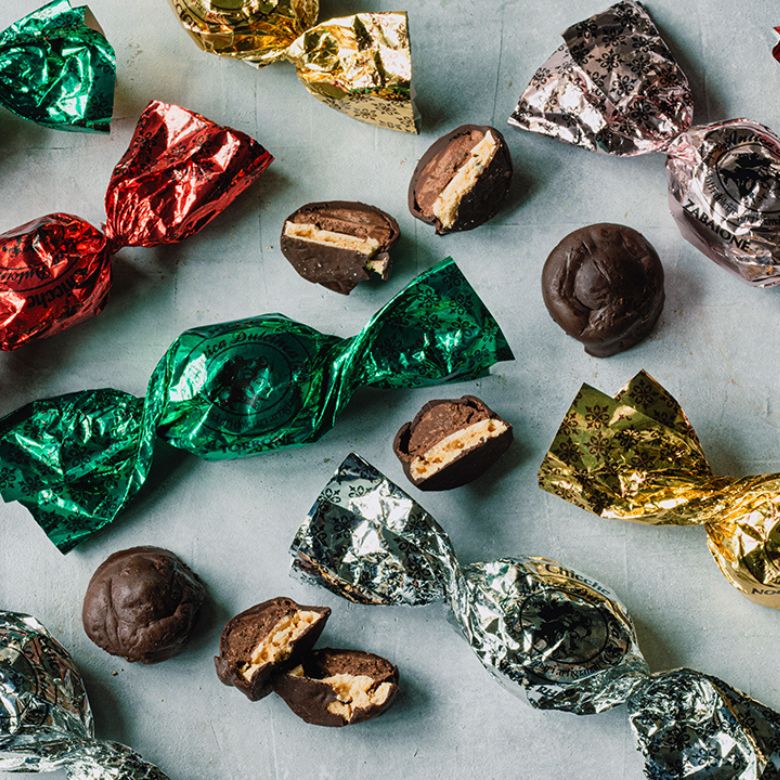 【Hazel Nuts】ヘーゼルナッツクリーム、チョコレート、砂糖、卵白、蜂蜜/乳化剤、香料(一部に乳成分・卵・アーモンド・大豆を含む)【Rhum】チョコレート、ヘーゼルナッツクリーム、洋酒、砂糖、卵白、蜂蜜、/乳化剤、香料、酸化防止剤(クエン酸)、(一部に乳成分・卵・アーモンド・大豆を含む)【Pistachio】ピスタチオクリーム、チョコレート、砂糖、卵白、蜂蜜/乳化剤、香料、(一部に乳成分・卵・大豆を含む)【Marrone】マロンクリーム、マロンペースト、チョコレート、砂糖、卵白、蜂蜜/加工デンプン、乳化剤、香料、カラメル色素、増粘多糖類、(一部に卵・大豆を含む)