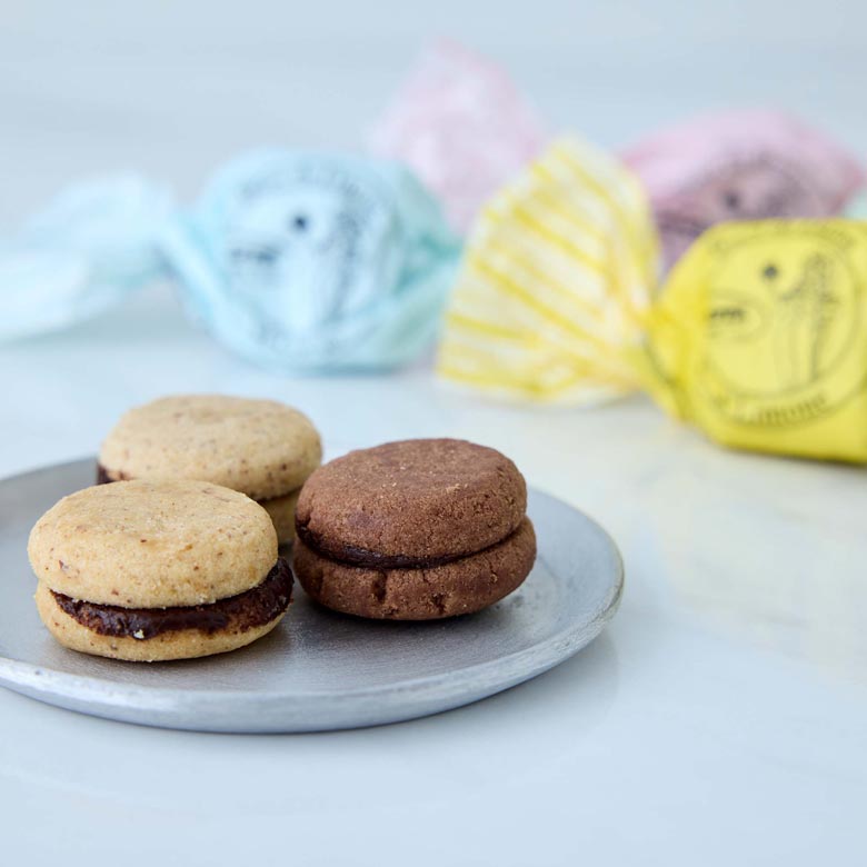 「貴婦人のキス」と呼ばれる、香ばしい生地でチョコレートをはさんだクッキーサンド。 上質なバターをたっぷり使った、イタリア・ピエモンテの伝統的な焼き菓子です。パスティチェリア リッパの代表的な商品であるバーチ・ディ・ダーマはDEAN & DELUCAの中でも長年のロングセラーであり人気商品です。濃厚なチョコレートをサンドしたクッキーはコーヒーのお供にもピッタリで、老若男女どんな人でも楽しんでいただけます。