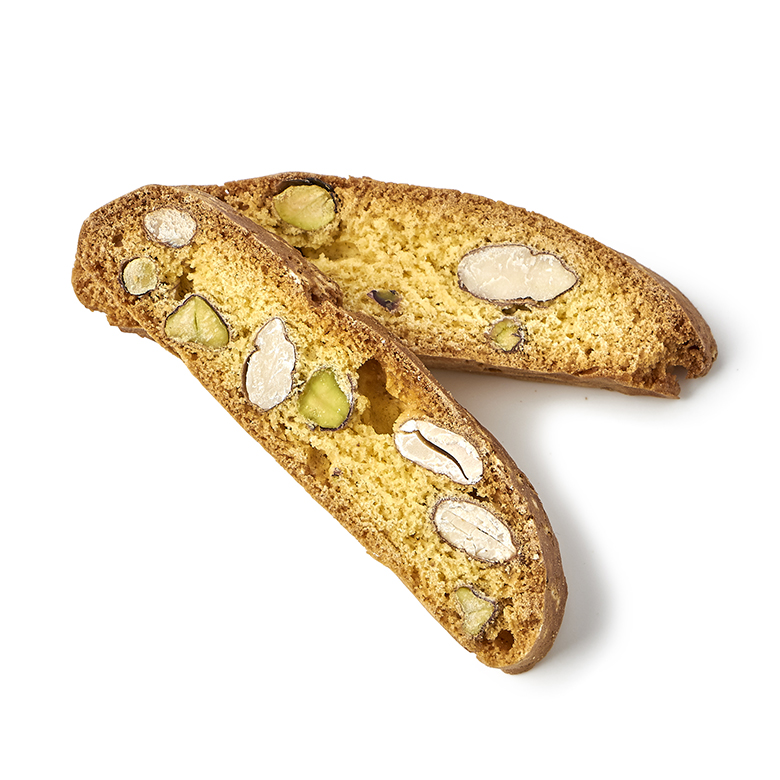 バターなど一切使わずに焼き上げたカントゥッチ。ピスタチオとアーモンドの香り高く,カリカリとした食感がおすすめ。