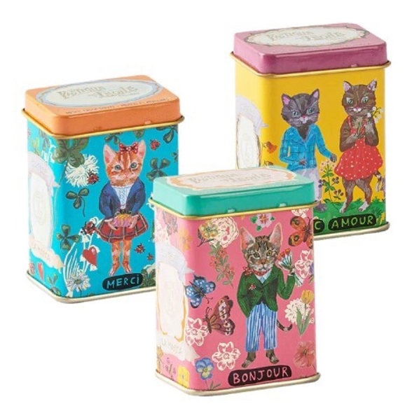 アーティスト、ナタリーレテが描く愛らしい限定缶にグルテンフリーのラムネのようなキャンディを詰めて。
