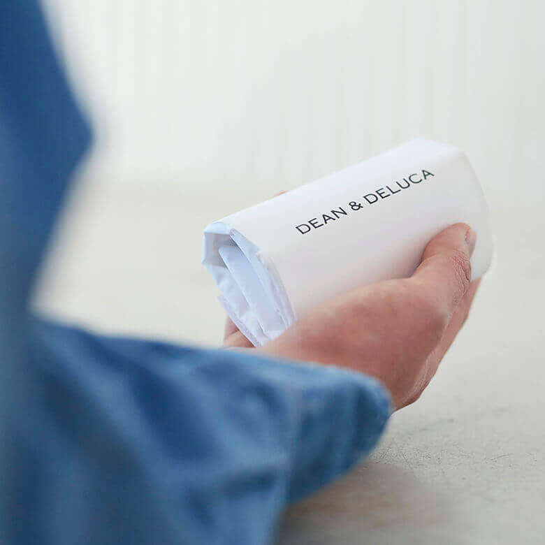 通勤・通学の途中に、朝ごはんのパンやランチを買ったり、大きなショッピングバッグではかさばってしまう、そんな“毎日”のちょっとした場面で使い心地の良いバッグです。使いやすいシンプルなデザインで、ちょっとしたお買い物で活躍すること間違いなし。 使わないときは、くるくると たたんで手のひらサイズに。