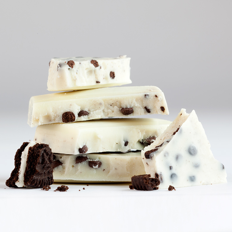 ホワイトチョコレートにクッキークランチがたっぷり入った食感が楽しいチョコレートバー。