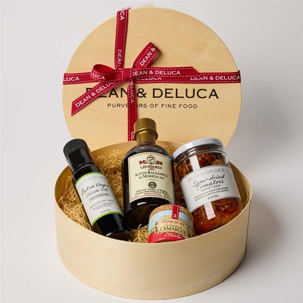 オリーブオイルやバルサミコ酢、シーソルトなど様々なシーンでお使いいただけるコンディメントをパニエにつめたギフトセットです。