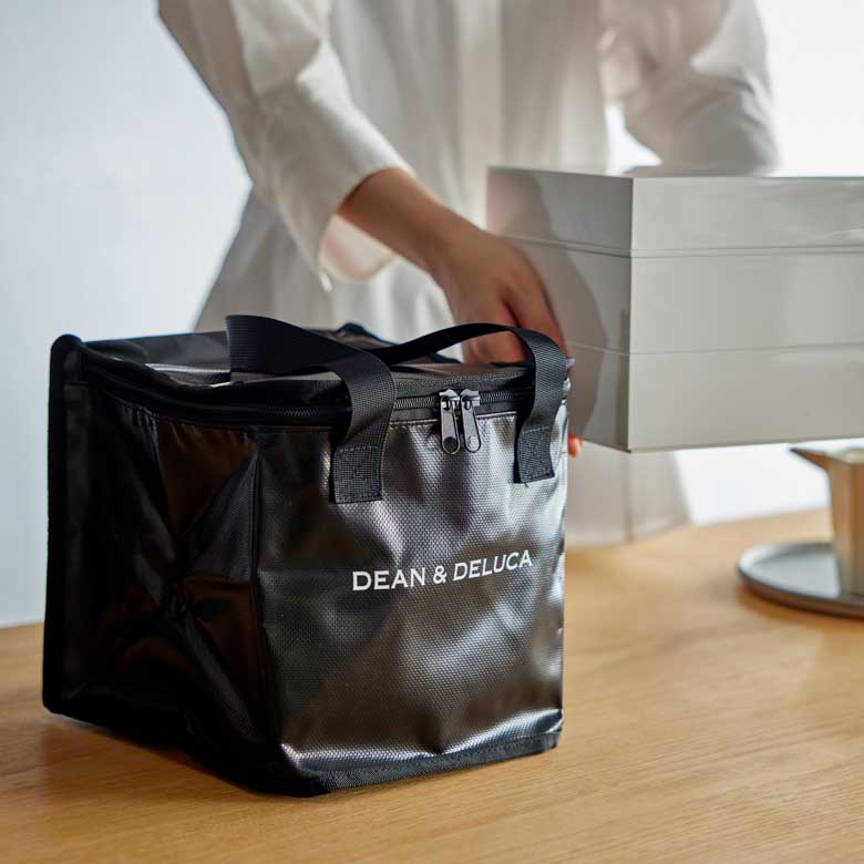 DEAN & DELUCA の 三段重大 を入れるのにぴったりのサイズで、中の料理を安定して持ち運ぶことができます。