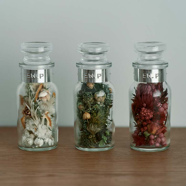 「花を棄てずに未来へ繋ぐ」という理念のもと、独自の感性で花の新たな可能性を引き出すクリエイティブスタジオ『edenworks』。その思想を受け継ぐ『EW.Pharmacy』が手がけるドライフラワーのアレンジメントは、花や植物が生き物であることを尊重し、一つひとつ丁寧につくり上げられています。日々の空間に馴染みながらも、彩りを添えてくれる特別なアイテムです。