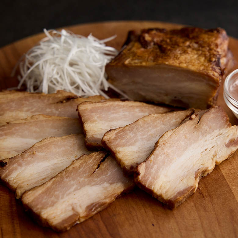 良質な脂をもつ幸福豚のばら肉を使い、秘伝のレシピを用いてはちみつを塗り重ねながらひとつひとつ丁寧に焼きあげました。鹿児島・鹿屋『ふくどめ小牧場』のオリジナルブランド豚・幸福豚の上品な脂の旨味と柔らかくしっとりとした肉質を存分に味わうことができます。甘じょっぱいタレは大人から子どもまで皆がよろこぶ味わいです。