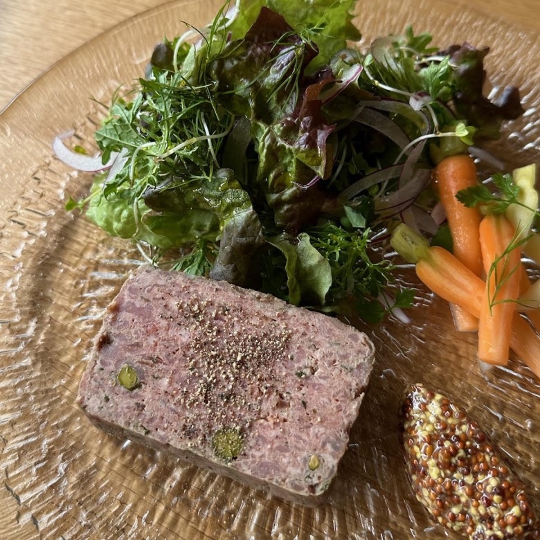 パテ・ド・カンパーニュ:時間をかけしっとり焼きあげたパテ・ド・カンパーニュは、宮崎県の“きなこ豚”を使用しマルサラ酒でマリネした鶏レバー、ピスタチオやハーブの香りや食感をお楽しみ頂けます。 サラダやサンドの具材、ワインのおつまみ等パーティメニューにもおすすめです。