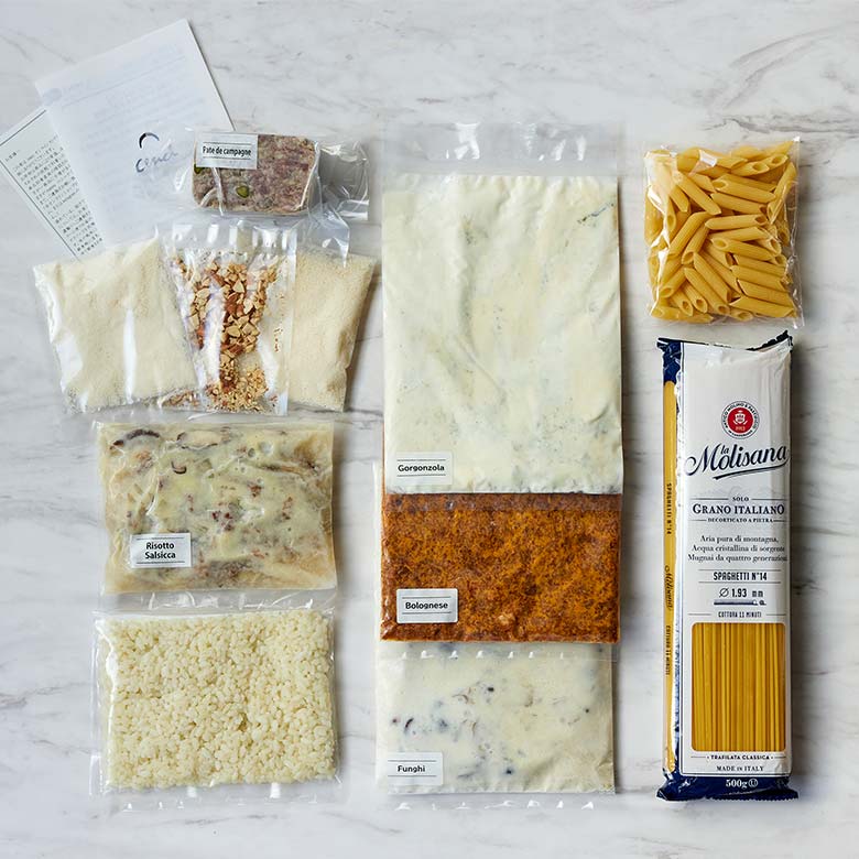 ご自宅で、『チェンチ』の味わいを再現できる、パテ・ド・カンパーニュとパスタソース、リゾットのセット。 一つずつ丁寧に調理されたソースは、実際にそのままお店で出せるクオリティーに仕上がっています。 予約の取れない名店の味わいを、ご自宅でぜひご堪能ください。