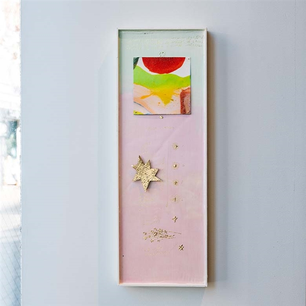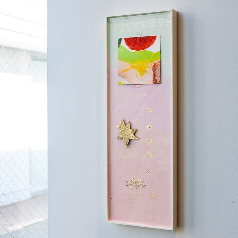 キャンバスいっぱいに踊るようにうねる様々な色のドットと、光のエネルギーを束ねたような金彩が印象的なドローイング。 世界に溢れる豊かな色や、誰かを励まし寄り添うような光が表現された大岡氏のアートがホリデーのひとときを彩ります。 ホリデーの「おいしい時間」を祝福する、特別なアートをおたのしみください。