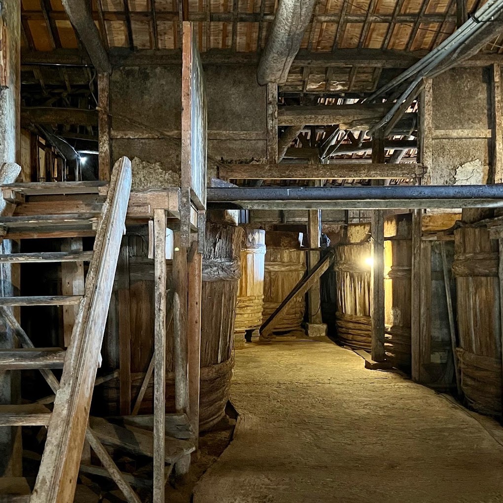 150年前から続く蔵元。全量木桶仕込みで温度管理が難しく、非常に手間と時間がかかります。木桶に使われる杉材の表面と、明治初期に建てられたもろみ蔵は発酵の主人公である微生物が住み着いています。生きている木桶と蔵から、コクやまろやかさといった旨みが高い醤油ができあがります。