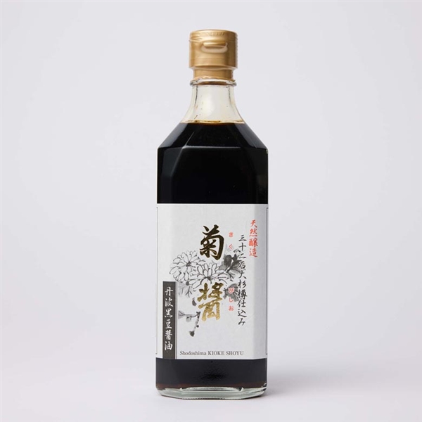 大豆は丹波黒豆を使用し、高貴な香りと端麗な色も特徴なことから、かけ醤油としてはもちろん、野菜の煮物など、色を奇麗に仕上げたいお料理にも最適です。