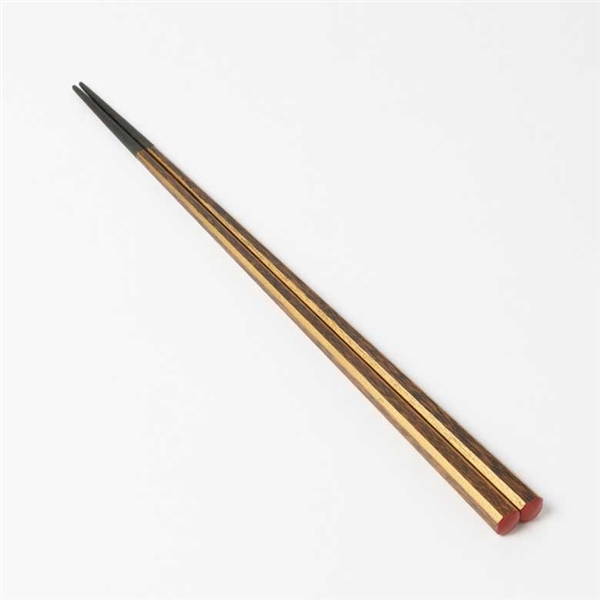 土直漆器 亀甲箸光線(金) 朱 22.5cm
