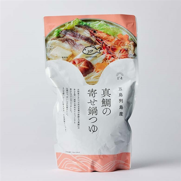 五島近海で水揚げされた天然真鯛のあらを使用し、昆布と自家製の醤油をあわせてじっくりと煮込んだ鍋つゆです。ストレートタイプ。