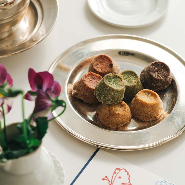 世界各地に古くから伝わるお菓子。 手のひらの上でそっと輝く口福には、友愛、平穏、繁栄などさまざまな願いが込められています。 大切な方への、想いのしるしに。 菓子研究家の福田里香さんとともに、メッセージも届ける心ときめくお菓子をつくりました。