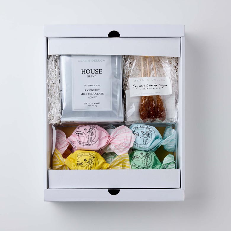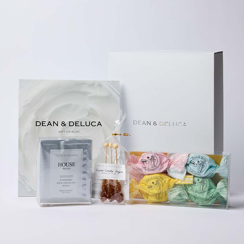 DEAN & DELUCA の商品・世界観を丸ごと一冊に詰め込んだ「ギフトカタログ」に、人気の焼き菓子と紅茶のドリップコーヒーをセットにしました。