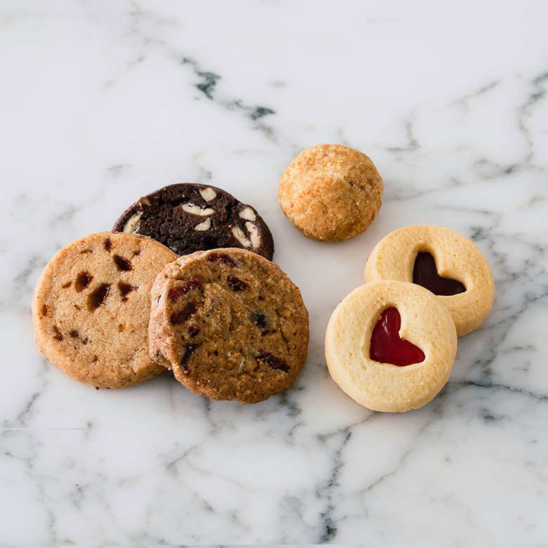 DEAN & DELUCAのロゴの入ったシルバー缶に、11種類のアメリカンクッキーをつめあわせました。素朴な味わいのクッキーがぎっしり45枚。アイシングやジャムサンド、キャラメル、ナッツ、スパイスを使用したクッキーなどが入っています。