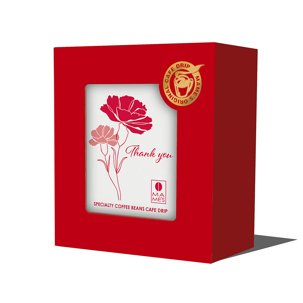母の日限定パッケージ。マメーズの定番ブレンドを、カフェドリップに。飽きの来ないバランスの取れた味わいが人気です。