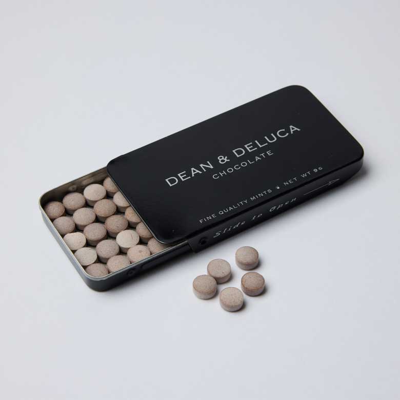 オリジナルの缶に入った、リフレッシュ用のチョコミントタブレット。