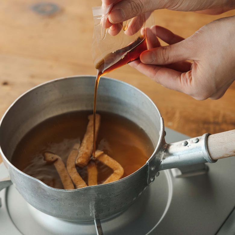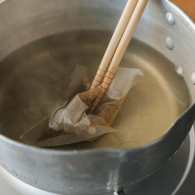 ※作り方のポイントは、②の出汁パックを取り出す際、よく絞ること。出汁の旨味を1滴も無駄にせず絞りましょう。
