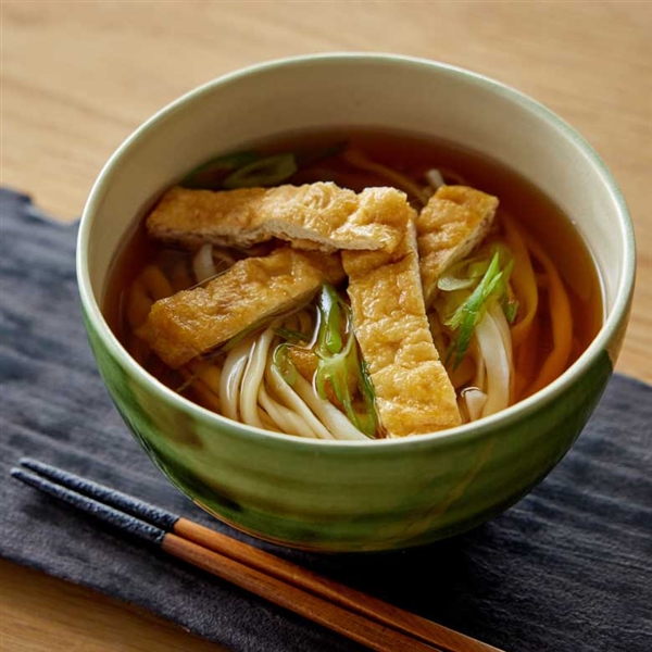 味わいの決め手はうるめ・さば・いわしの混合削りと花鰹を贅沢に加えた利尻昆布だし。のどごしのよさともちっとした食感の半生めんは、つゆとよく絡み、きつね揚げにもしっかりとおだしが染み込んで、口にふくめるとやさしい旨さが広がります。