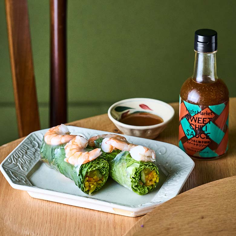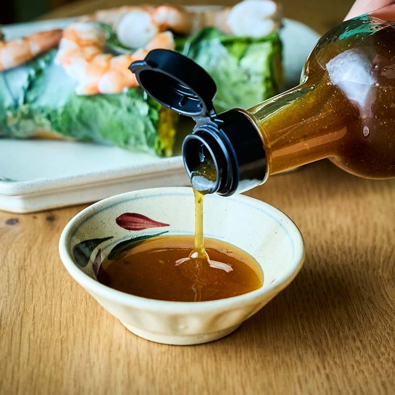 日本の魚醤“しょっつる”、黒糖、柚子胡椒を合わせたスイートチリソース。生春巻き、赤身魚のカルパッチョにおすすめです。