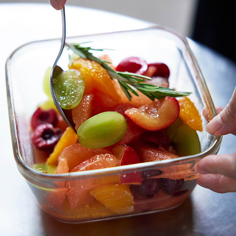 厚みのあるガラスに、シンプルなロゴと飽きのこないホワイトのフタ。食材そのもの色を美しく見せてくれる「食材を主役にする」ガラスコンテナ。 毎日の食事の中で、調理行程での洗い物やゴミを減らす工夫や、食べきれる分だけを作って、残さず食べる習慣など。ガラスコンテナを上手に取り入れて、身近なところから地球にやさしいアクションをはじめてみませんか。