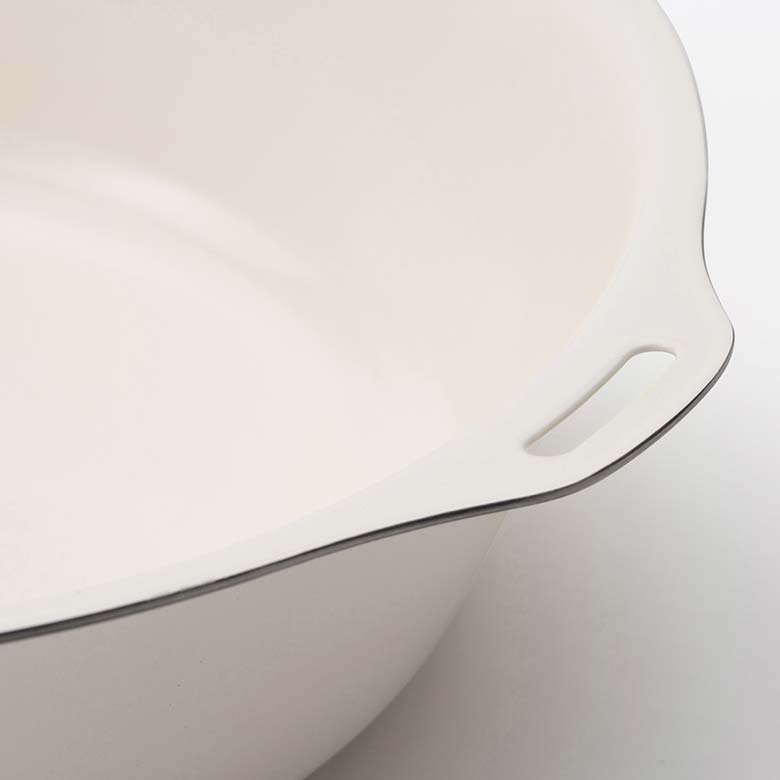 耐熱性・耐摩耗性に優れ、汚れが落ちやすい琺瑯製のボウル。