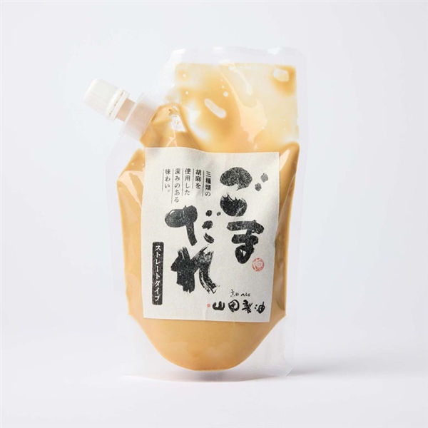 職人の手作りでしか味わえない繊細な風味が楽しめる京都・桂のごま屋「山田製油」がつくる、ストレートタイプのごまだれ。手軽につかえるパウチタイプです。